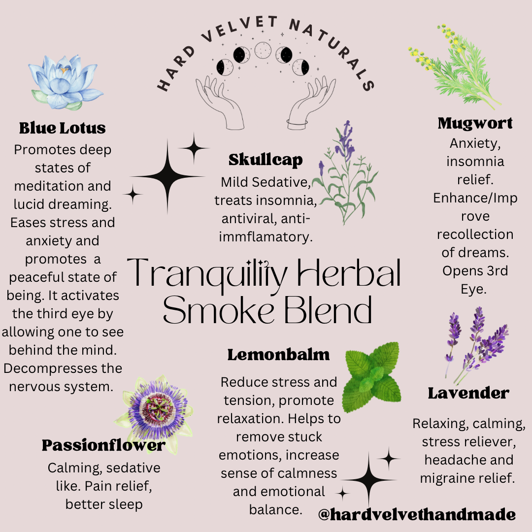 💫 A beautiful blend of herbs to help support relaxing and relieving stress of the mind and body. ✨ With a special focus on the Nervous and Muscular System. Can be used alone or with your special added herbs to be smoked, used as a loose Incense to be inhaled, or drank as a tea!